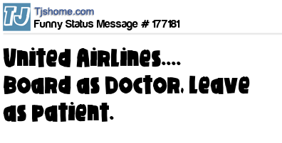 - # 177257 United Airlines.... Board as Doctor, cry like a baby, leave as patient.