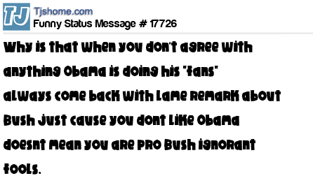 X is why is that when you don't agree with anything Obama is doing his "fans" always come back with lame remark about Bush just cause you dont like Obama doesnt mean you are pro Bush ignorant fools.