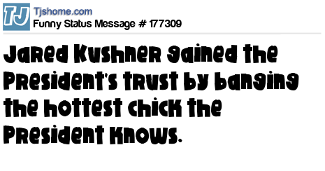 X says Jared Kushner gained the President's trust by banging the hottest chick the President knows.