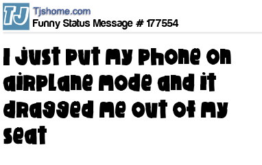 - # 177178 Put my phone on airplane mode and some bloke came over and dragged me out of the house.