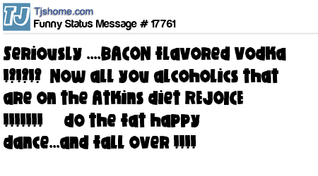 X says seriously ....BACON flavored Vodka !?!?!?  Now all you alcoholics that are on the Atkins diet REJOICE !!!!!!!     do the fat happy dance...and fall over !!!!