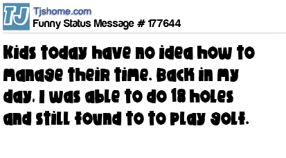 X is Kids today have no idea how to manage their time. Back in my day, I was able to do 18 holes and still found to to play golf.