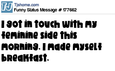 - # 146116 I'm in touch with my feminine side. ... She just doesn't know it yet.