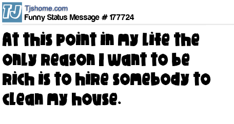 X is At this point in my life the only reason I want to be rich is to hire somebody to clean my house.