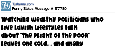 X says Watching wealthy politicians who live lavish lifestyles talk about "the plight of the poor" leaves one cold.... and angry