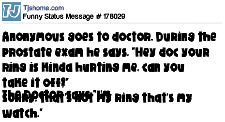 X is Anonymous goes to doctor. During the prostate exam he says, "Hey doc your ring is kinda hurting me, can you take it off?"