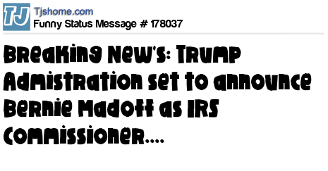 X says Breaking New's: Trump Admistration set to announce Bernie Madoff as IRS Commissioner....