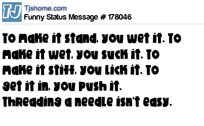 - # 204142 To make it stand, you wet it. To make it wet, you suck it. To make it stiff, you lick it. To get it in, you push it. Threading a needle isn't easy...