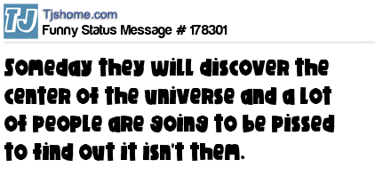 X says Someday they will discover the center of the universe and a lot of people are going to be pissed to find out it isn't them.