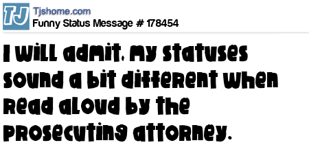 X says I will admit, my statuses sound a bit different when read aloud by the prosecuting attorney.