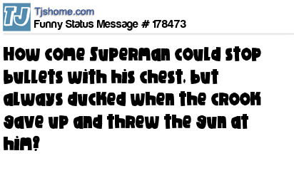 - # 30161 you ever notice that when the bad guy is shooting at Superman, he stands there and lets the bullets bounce of his chest but when they throw the gun, he ducks?