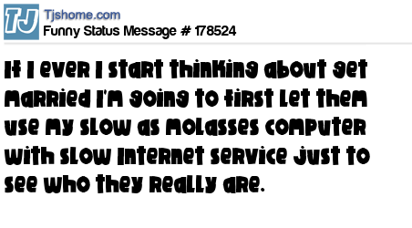X says If I ever I start thinking about get married I'm going to first let them use my slow as molasses computer with slow Internet service just to see who they really are.