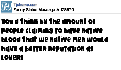 X says You'd think by the amount of people claiming to have native blood that we native men would have a better reputation as lovers