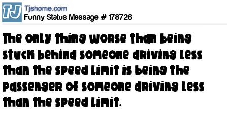 X is The only thing worse than being stuck behind someone driving less than the speed limit is being the passenger of someone driving less than the speed limit.