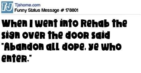X says When I went into Rehab the sign over the door said "Abandon all dope, ye who enter."