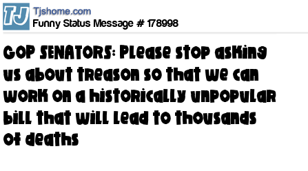 X says GOP SENATORS: Please stop asking us about treason so that we can work on a historically unpopular bill that will lead to thousands of deaths