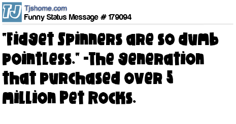 X says "Fidget Spinners are so dumb pointless." -The generation that purchased over 5 million Pet Rocks.