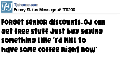 X says forget senior discounts..Oj can get free stuff just buy saying something like "I'd kill to have some coffee right now"
