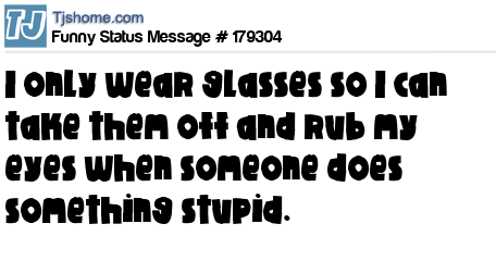- # 180338 The only reason I wear glasses is so I can take them off and rub my eyes when somebody does something stupid.