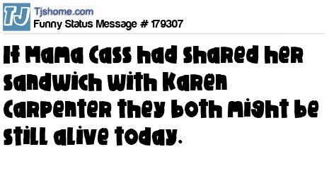 - # 140732 If Mama Cass had shared her sandwich with Karen Carpenter they both might be alive today.