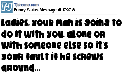 X Ladies, your man is going to do it with you, alone or with someone else so it's your fault if he screws around...
