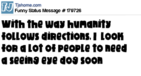 X says With the way humanity follows directions, I look for a lot of people to need a seeing eye dog soon