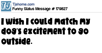 X says I wish I could match my dog's excitement to go outside.