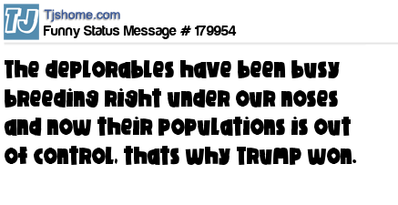 X says The deplorables have been busy breeding right under our noses and now their populations is out of control, thats why Trump won.