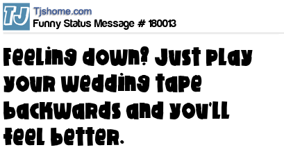 X is Feeling down? Just play your wedding tape backwards and you'll feel better.