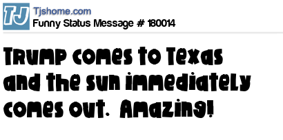 X says Trump comes to Texas and the sun immediately comes out. Amazing!