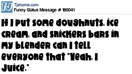 X says If I put some doughnuts, ice cream, and snickers bars in my blender can I tell everyone that "Yeah, I Juice."
