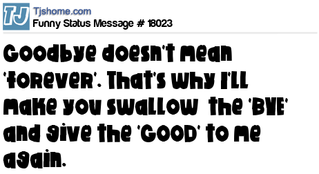 X  Goodbye doesn't mean 'forever'. That's why I'll make you swallow  the 'BYE' and give the 'GOOD' to me again.