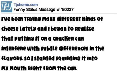 X says I've been trying many different kinds of cheese lately and I began to realize that putting it on a cracker can interfere with subtle differences in the flavors, so I started squirting it into my mouth right from the can.