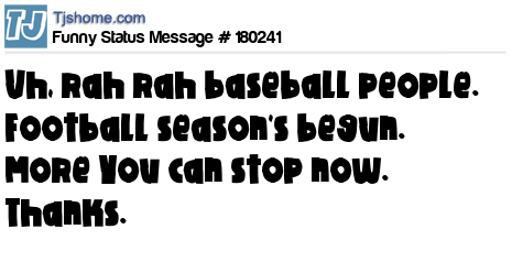 X says Uh, rah rah baseball people. Football season's begun. More You can stop now. Thanks.