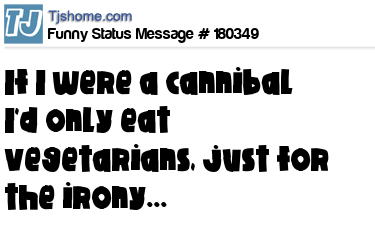 - # 42725 I think that if I were a cannibal I'd only eat vegetarians, for the irony.