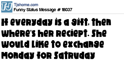 X If everyday is a gift, then where's her reciept. She would like to exchange Monday for Satruday