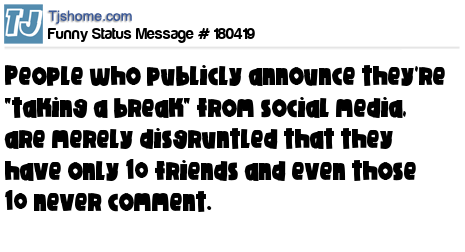 X says People who publicly announce they're "taking a break" from social media, are merely disgruntled that they have only 10 friends and even those 10 never comment.