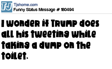 X is I wonder if Trump does all his tweeting while taking a dump on the toilet.