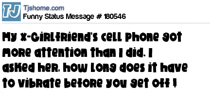 X says My x-Girlfriend's cell phone got more attention than I did. I asked her, how long does it have to vibrate before you get off !