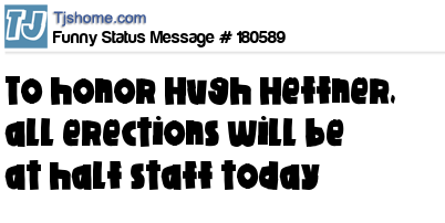 X says To honor Hugh Heffner, all erections will be at half staff today