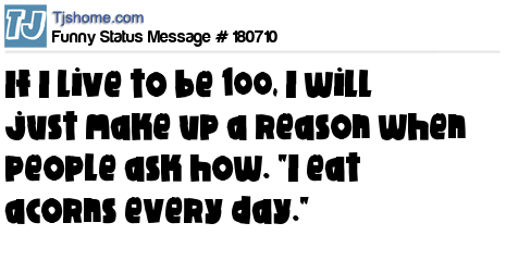 X says If I live to be 100, I will just make up a reason when people ask how. "I eat acorns every day."