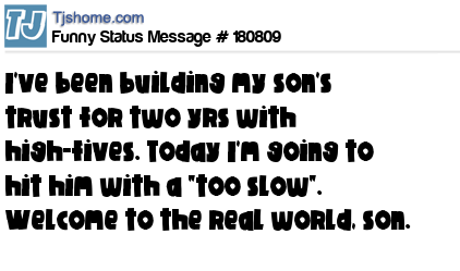 X says I've been building my son's trust for two yrs with high-fives. Today I'm going to hit him with a "too slow". Welcome to the real world, son.