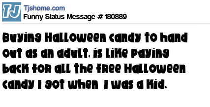 - # 153959 When you buy Halloween candy to hand out as an adult, it's like you are paying for all the free candy you got when you were a kid.