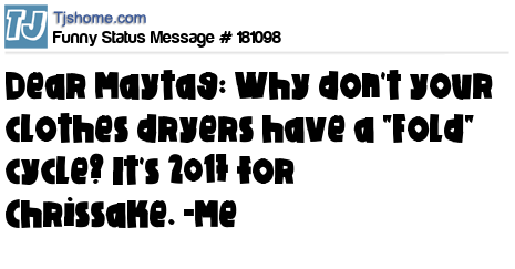 X says Dear Maytag: Why don't your clothes dryers have a "Fold" cycle? It's 2017 for Chrissake. -Me