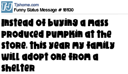 X says Instead of buying a mass produced pumpkin at the store, this year my family will adopt one from a shelter
