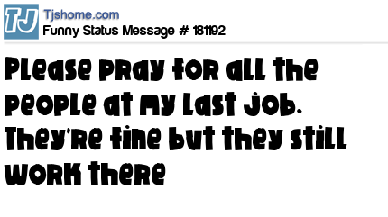 X says Please pray for all the people at my last job. They're fine but they still work there