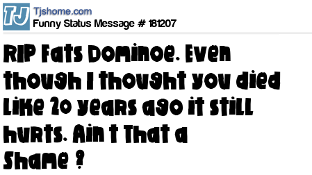 X says RIP Fats Dominoe. Even though I thought you died like 20 years ago it still hurts. Ain’t That a Shame”?