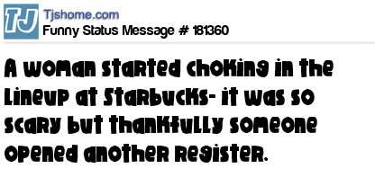 - # 139798 A woman started choking in the line at Starbucks- it was so scary but thankfully someone opened another register.