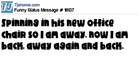 - # 2372 spinning in his new office chair so I am away, now I am back, away again and back.