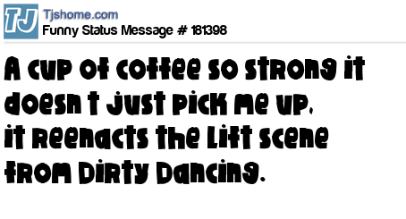 X says A cup of coffee so strong it doesn’t just pick me up, it reenacts the lift scene from Dirty Dancing.